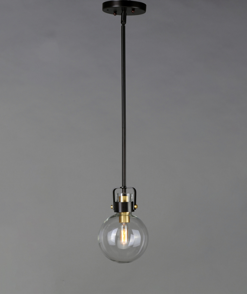 This classic Mid Century Modern design features a frame finished in a combination of Bronze and Satin Brass. The arms terminate at rings that support Clear heavy blown glass shades which were prevalent in this era.