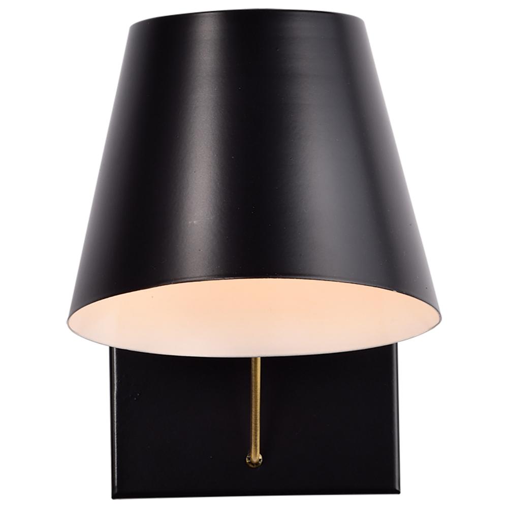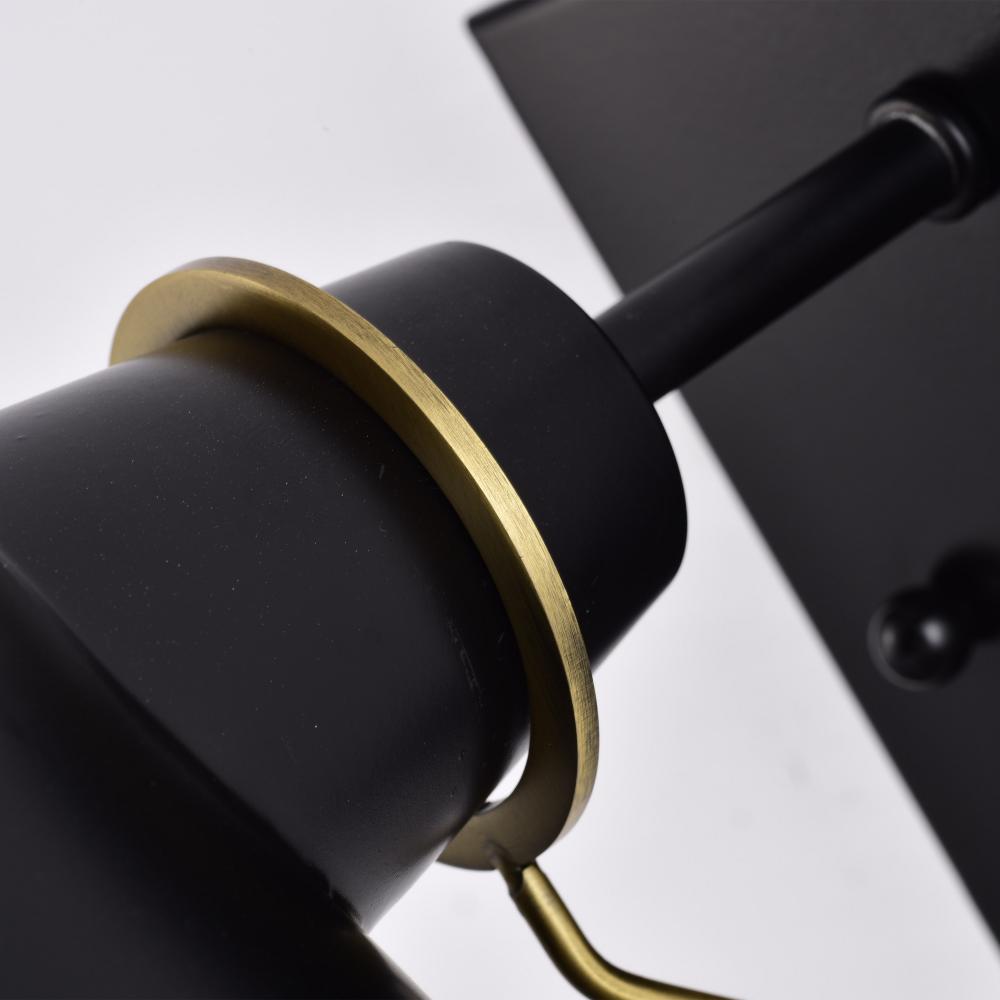 The Baxter 60-7381 vanity light does not disappoint with its modern design and impressionable style. The black shade is finely cut at an angle and features a white interior to maximize the light output. The lustrous burnished brass stem attaches from the l