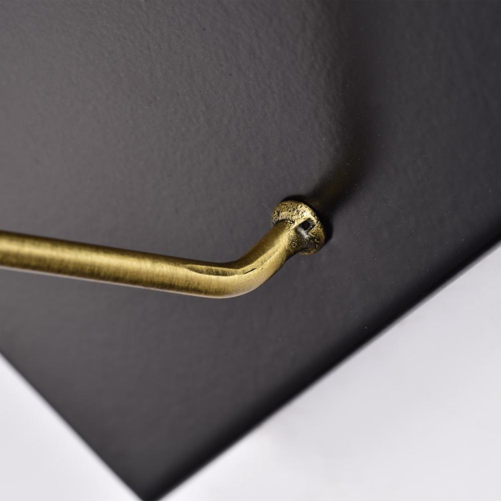 The Baxter vanity light does not disappoint with its modern design and impressionable style. The black shade is finely cut at an angle and features a white interior to maximize the light output. The lustrous burnished brass stem attaches from the lamp to t