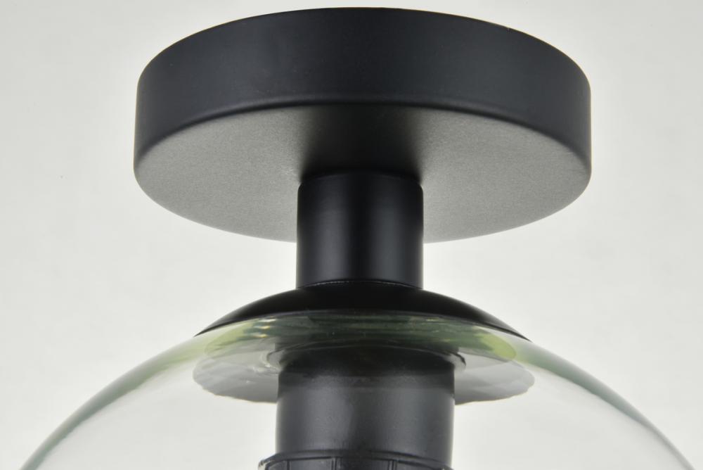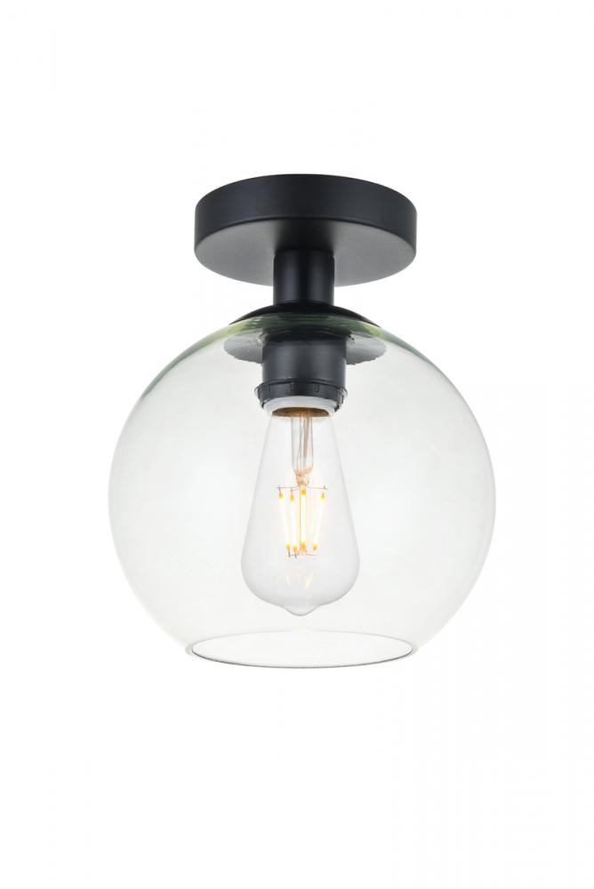 Refined style with a practical design, Baxter flush-mount ceiling lamps bring cosmopolitan sophistication anywhere, especially to an entryway, hallway, bathroom, kitchen, or closet. The smooth iron frame features a disk-shaped canopy and comes in a black finish. The clear spherical glass shade remains open at the center to allow for effortless replacement of the filament-style bulb (not included). Living in the big city has never been this easy.