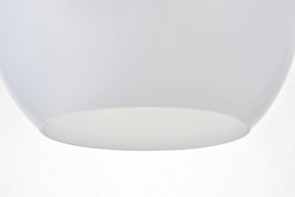 Feature 2: spherical frosted white glass shade with open center for easy bulb replacement