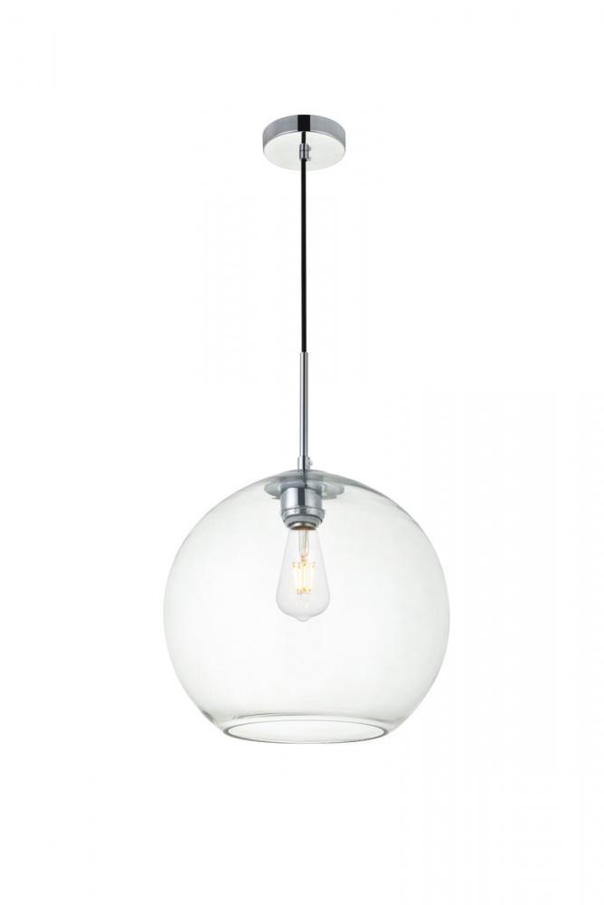 Refined style with a practical design, Baxter hanging pendant lamps bring cosmopolitan sophistication anywhere, especially to an entryway, office, bathroom, bedroom, or kitchen. The smooth iron frame features a disk-shaped canopy and comes in a chrome finish. An adjustable black cord allows you to vary the hanging height from 27 to 72 inches. The clear spherical glass shade remains open at the center to allow for effortless replacement of the filament-style bulb (not included). Living in the big city has never been this easy.