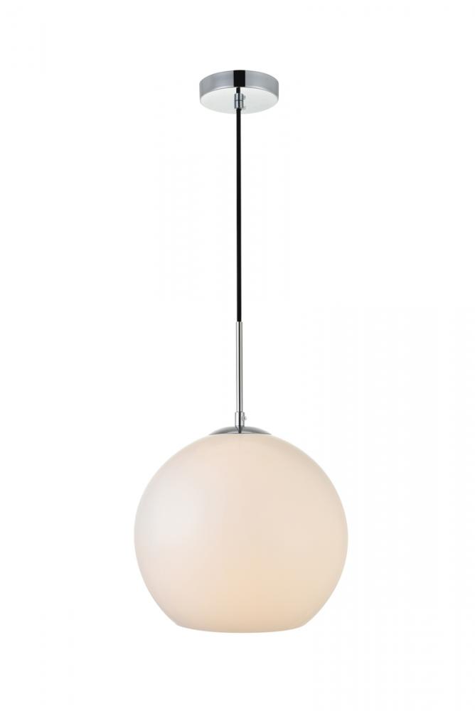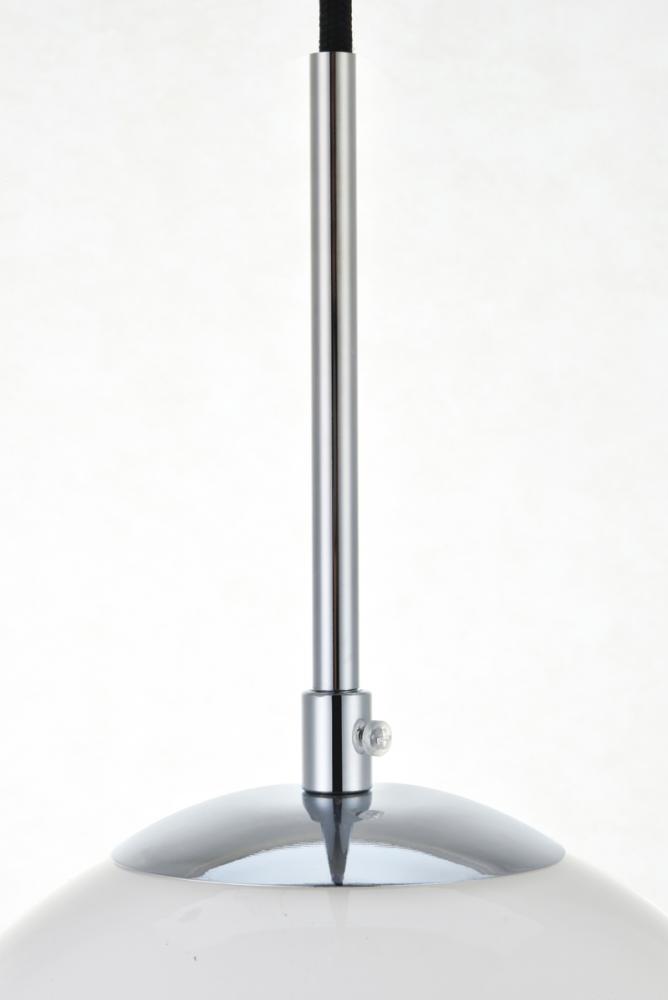 Refined style with a practical design, Baxter hanging pendant lamps bring cosmopolitan sophistication anywhere, especially to an entryway, office, bathroom, bedroom, or kitchen. The smooth iron frame features a disk-shaped canopy and comes in a chrome finish. An adjustable black cord allows you to vary the hanging height from 27 to 72 inches. The frosted white spherical glass shade remains open at the center to allow for effortless replacement of the filament-style bulb (not included). Living in the big city has never been this easy.