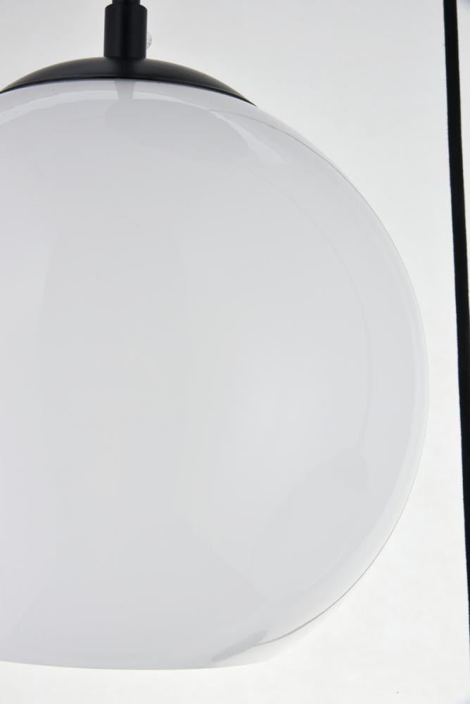 Feature 2: spherical frosted white glass shade with open center for easy bulb replacement
