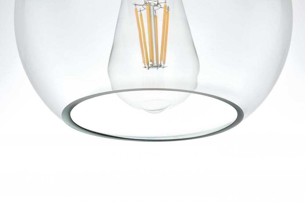 Features a clear glass shade, offering bright, unobstructed light and a clean, modern look.