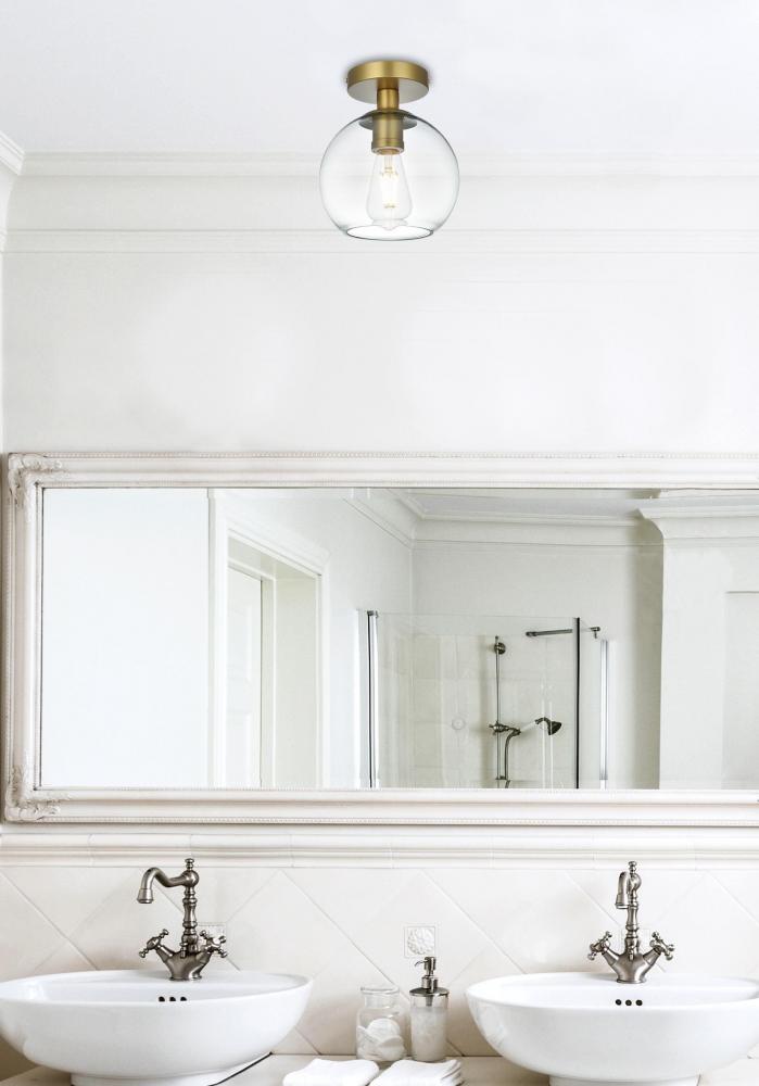 Baxter flush mount ceiling lamps deliver cosmopolitan sophistication through a refined yet practical design, perfect for enhancing any space—whether it's an entryway, hallway, bathroom, kitchen, or closet. The smooth iron frame features a disk-shaped canopy finished in sleek satin gold, paired with a clear spherical glass shade that remains open at the center for effortless bulb replacement. The filament-style bulb (not included) complements the timeless charm. Bringing big-city elegance into your home has never been simpler.