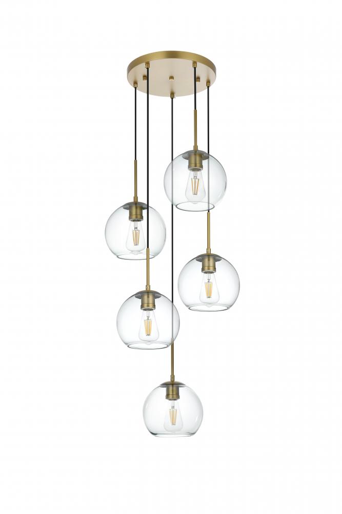 The Baxter hanging pendant light combines refined style with a practical design, adding cosmopolitan sophistication to any spaceābe it an entryway, hallway, bathroom, kitchen, or closet. The sleek iron frame, complete with a rectangular canopy, elegantly supports five clear spherical glass shade that stays open at the center, making bulb replacement effortless. Designed for those who love the look of big-city elegance, the Baxter pendant makes sophisticated living easy.