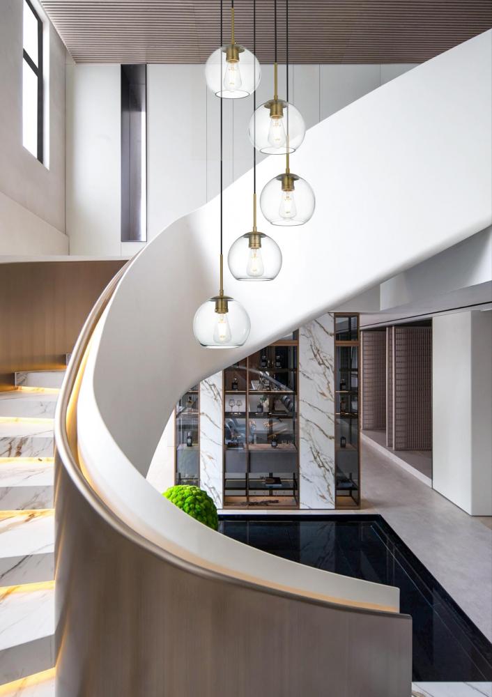 Features a clear glass shade, offering bright, unobstructed light and a clean, modern look.