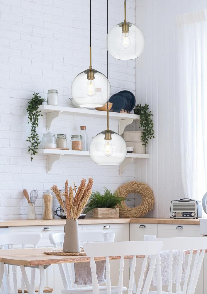 The Baxter hanging pendant light combines refined style with a practical design, adding cosmopolitan sophistication to any spaceābe it an entryway, hallway, bathroom, kitchen, or closet. The sleek iron frame, complete with a disk-shaped canopy, elegantly supports three clear spherical glass shade that stays open at the center, making bulb replacement effortless. Designed for those who love the look of big-city elegance, the Baxter pendant makes sophisticated living easy.