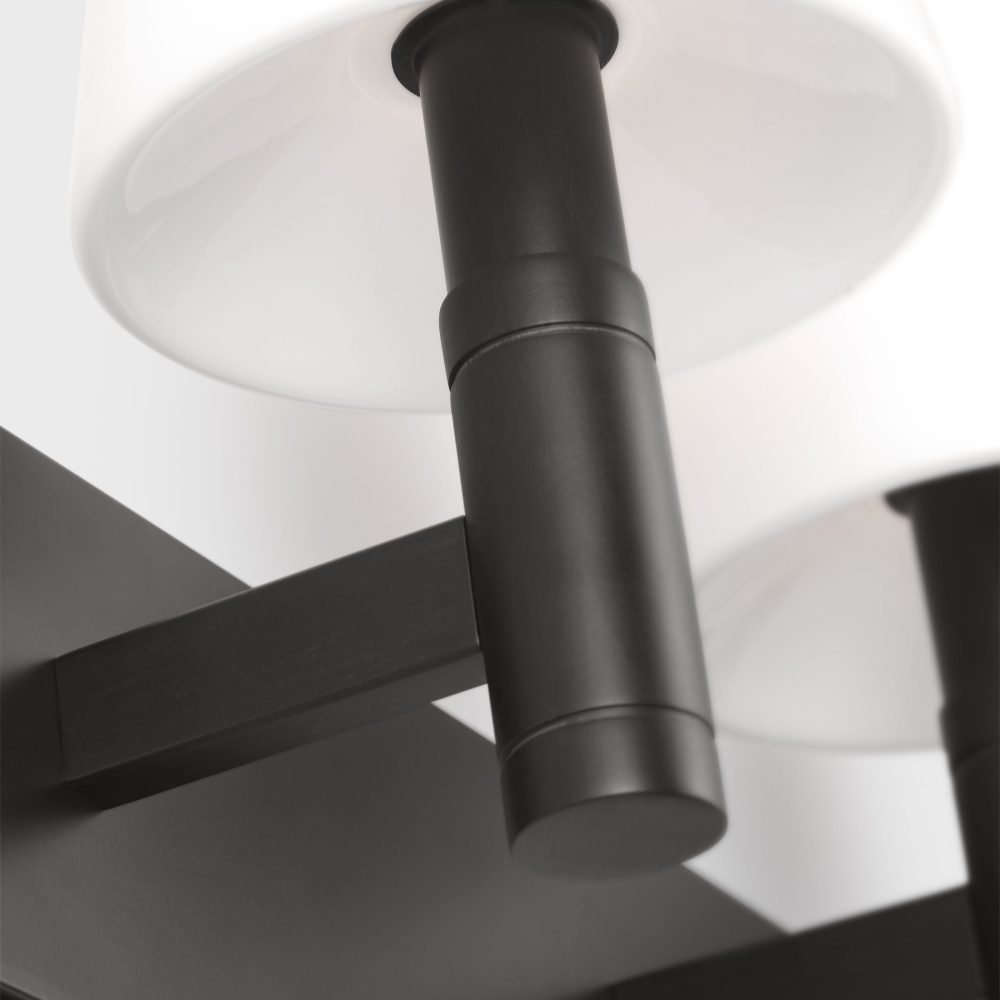 Crafted with Steel in a Aged Iron finish with milk glass shades