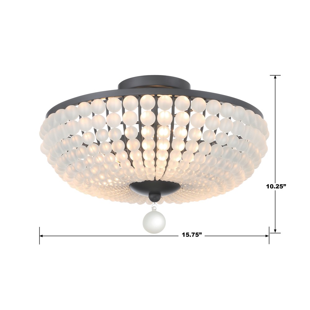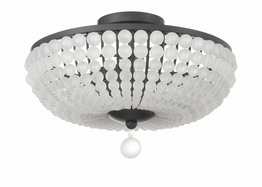 Add a touch of modern style to your décor with the Bella frosted glass bead ceiling mount. The metal frame features glass beads sweeping downward and inward, connecting a larger hanging glass ball. This elegant contrast of Matte Black or Antique Gold combined with frosted white glass adds a bold look to your indoor living areas.