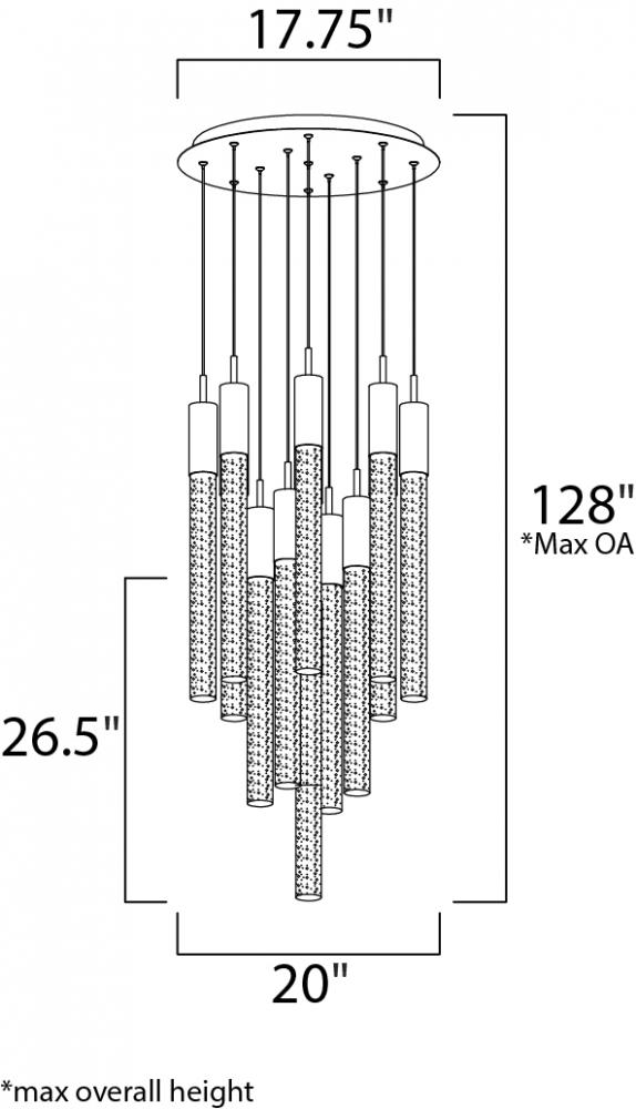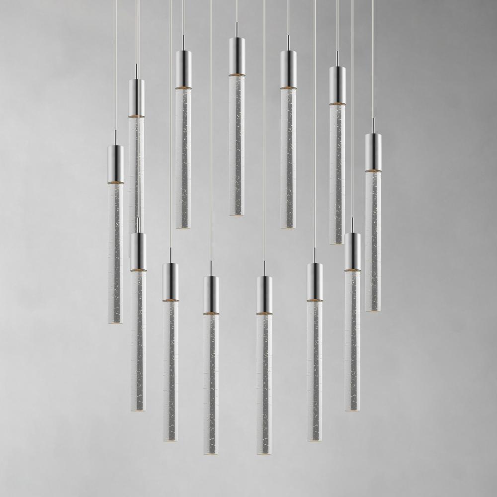 Our ever popular collection has grown up. Large scale fonts of clear bubble glass are suspended from Polished Chrome supports with no visible screws. Top of the line LED modules illuminate the glass from top to bottom with excellent color rendering.