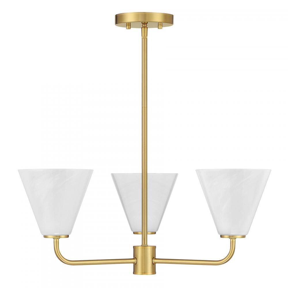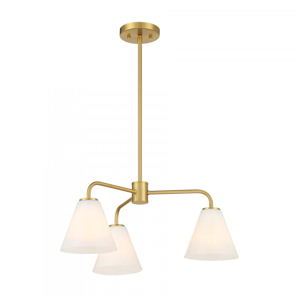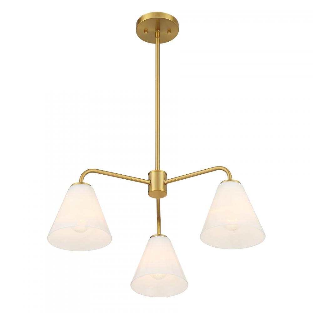 This Savoy House Blair 3-light chandelier is oh so versatile! It can be installed with the lights facing up or down, making it perfect for meeting every lighting need. Slender, sleek arms are finished in Warm Brass and topped with shades of spectacularly swirling strie glass. Blair is 24" in width and has an adjustable height ranging from 9" to 63". Uses three standard size bulbs of up to 60 watts per bulb. Bulbs not included. Comes with four 12" downrods and one 6" downrod.