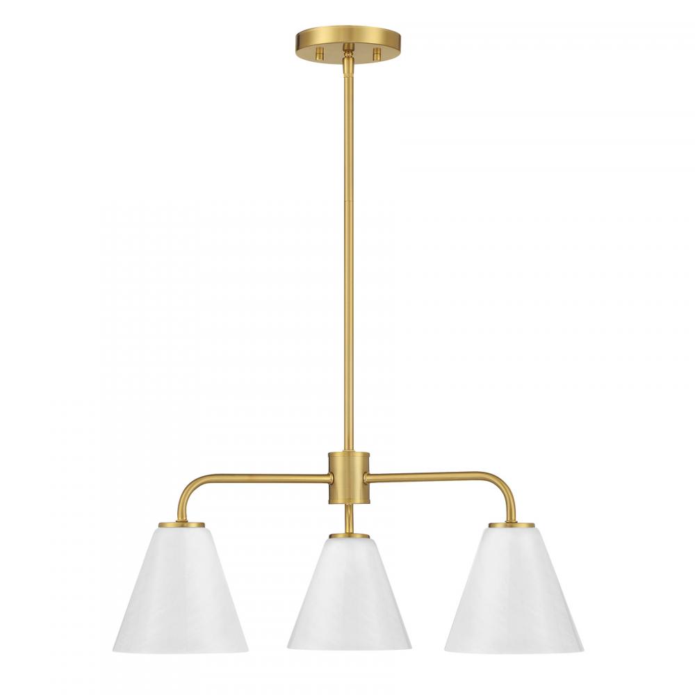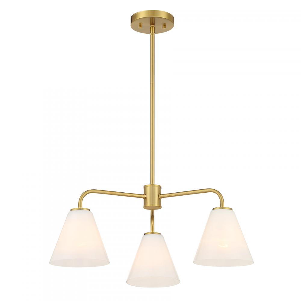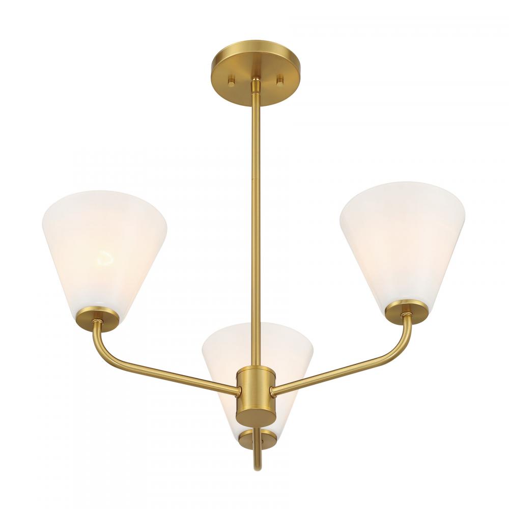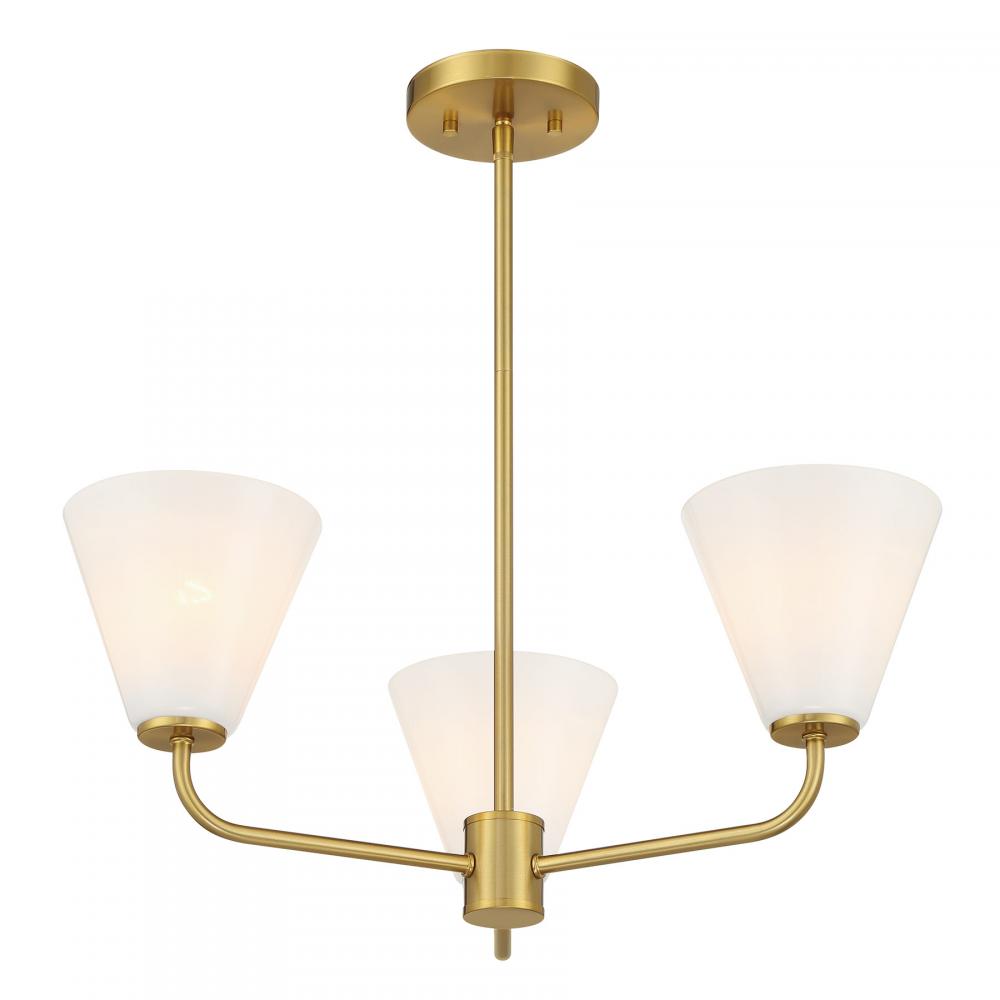 This Savoy House Blair 3-light chandelier is oh so versatile! It can be installed with the lights facing up or down, making it perfect for meeting every lighting need. Slender, sleek arms are finished in Warm Brass and topped with shades of spectacularly swirling strie glass. Blair is 24" in width and has an adjustable height ranging from 9" to 63". Uses three standard size bulbs of up to 60 watts per bulb. Bulbs not included. Comes with four 12" downrods and one 6" downrod.