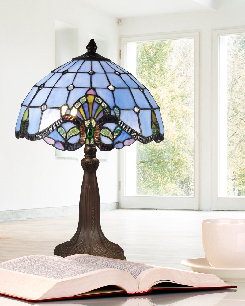 The Shade Of The Blue Baroque Table Lamp Is Hand Made Using The Traditional Copper Foil Technique. The Colors And Shape Of Individual Hand RolLED Art Glass (Tiffany) Of The Blue Baroque Table Lamp Will Not Just Illuminate But Decorate Any Space In Your Ho
