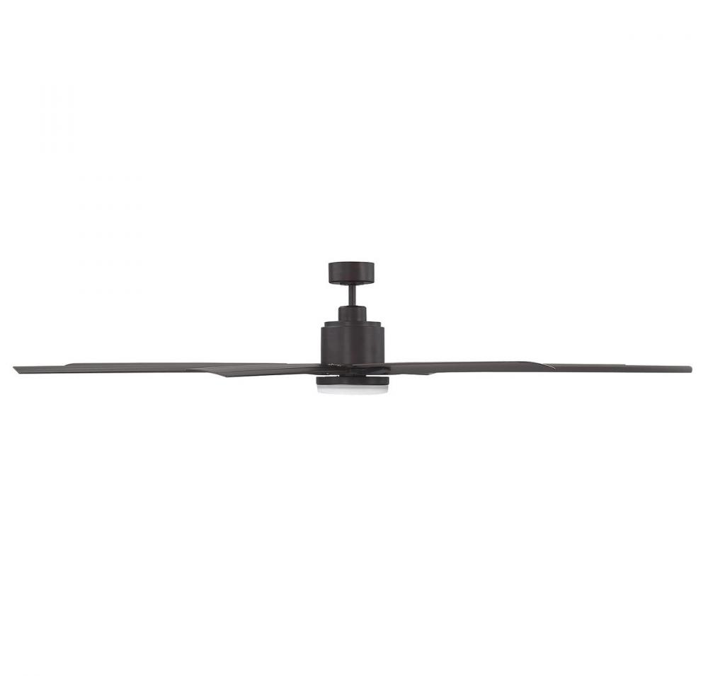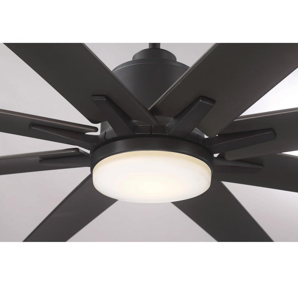 When you have a large area to keep cool and comfortable, and you want to do it with style, choose this Savoy House Bluffton ceiling fan. The handsome, streamlined, contemporary design suits most decor and the dark English bronze finish looks terrific with your other hardware and color schemes. An impressive 72" blade span, a six-speed reversible motor and eight slim blades combine for a ceiling fan with powerful temperature control. Plus, an integrated fan light kit with a 16W LED bulb and a white frosted glass shade is included. A full function handheld remote is also included. Bluffton brings stylish comfort and illumination in one fabulous fixture.