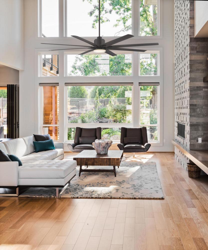 When you have a large area to keep cool and comfortable, and you want to do it with style, choose this Bluffton ceiling fan. The handsome, streamlined, contemporary design suits most decor, and the dark English bronze finish looks terrific with your other hardware and color schemes. An impressive 72” blade span, a six-speed reversible motor, and eight slim blades, combine for a ceiling fan with powerful temperature control. And it’s the complete package: a sleek, integrated fan light kit with 16W LED bulb and white frosted glass shade, is included. A full function, handheld remote is included, too, with six fan speed options and independent light control (separate light on/off and full range dimming). Stylish comfort and illumination in one fabulous fixture.