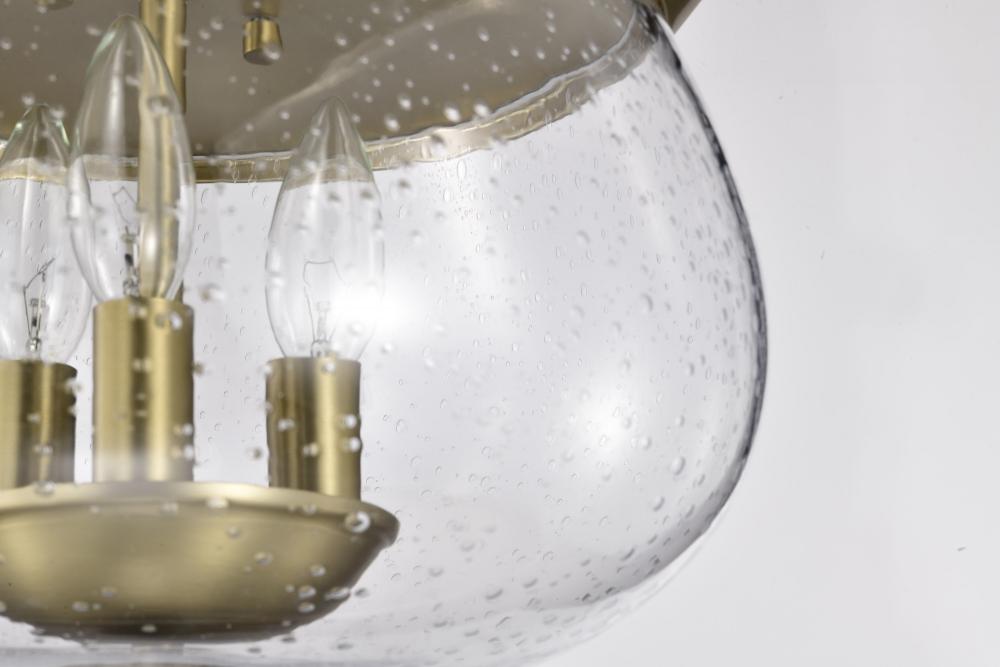 Boliver 3 Light Pendant; 14 Inches; Vintage Brass Finish; Clear Seeded Glass