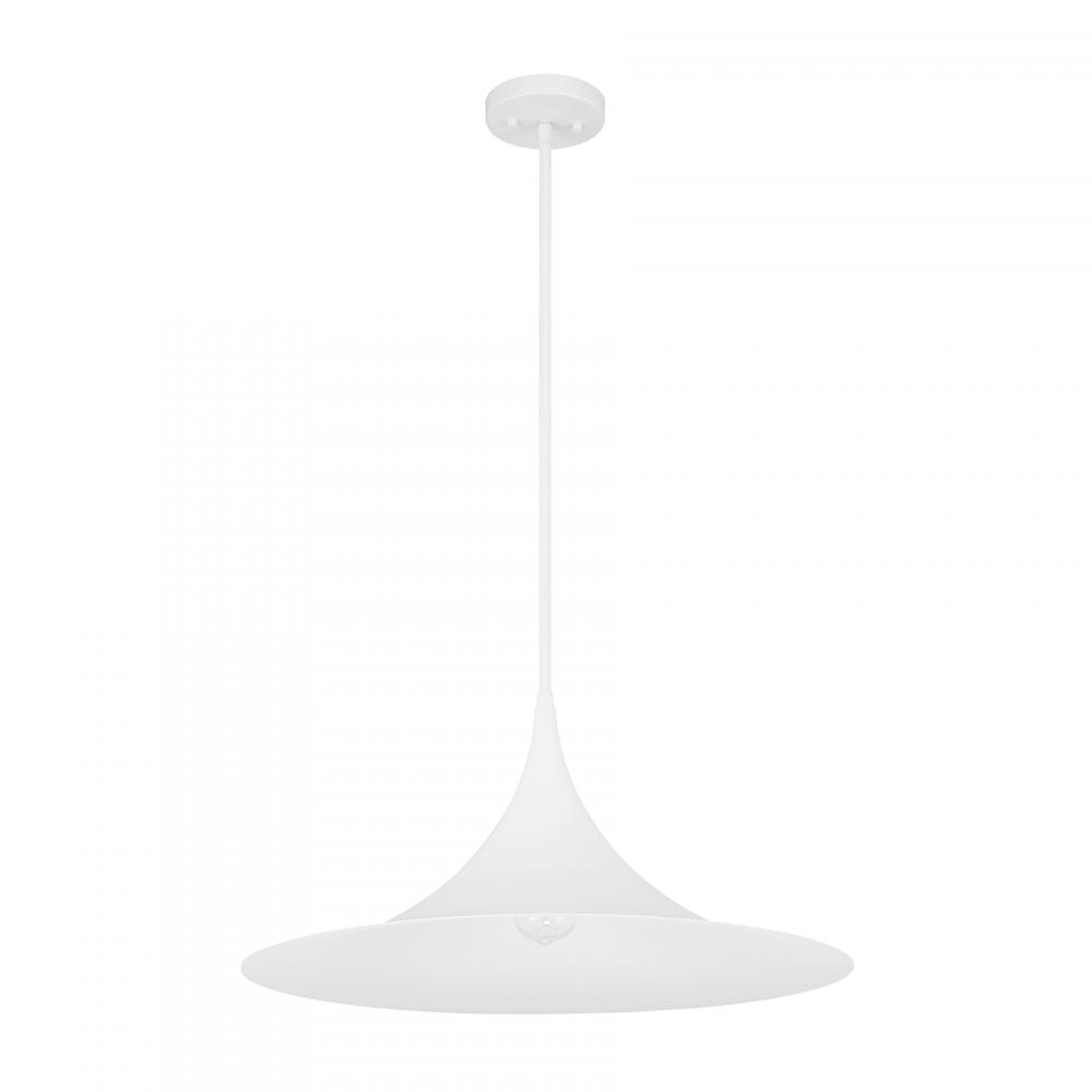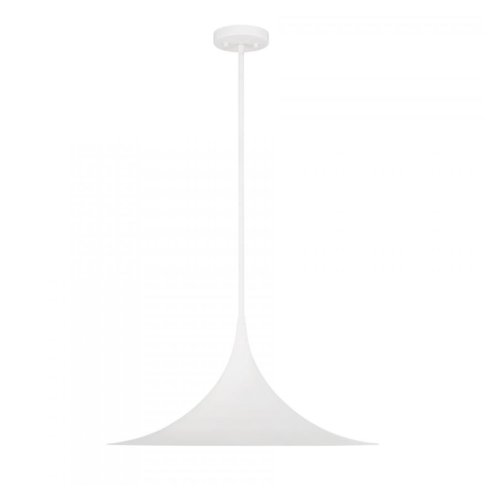 This Savoy House Bowdin 1-light pendant is beautiful in its simplicity. Its shade curves outward, bringing you a highly dramatic style that is perfect alone or in groupings. Finished in Bisque White. At 24" wide, with an adjustable height ranging from 11.25" to 65.25", it's great for large-scale spaces. Comes with four 12" downrods and one 6" downrod. Uses one standard size bulb of up to 60 watts. The bulb is not included.