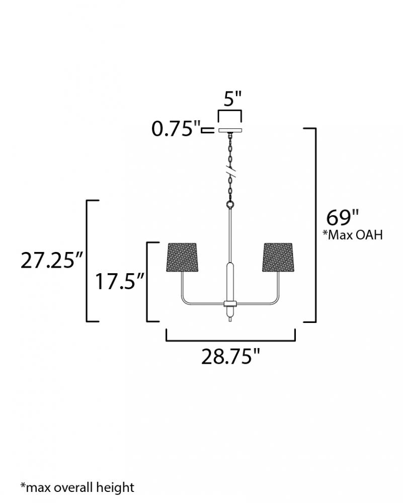 Natural White Oak wood details are featured plainly on a slim Matte Black metal frame. Oversized off-white linen shades cover sockets for a minimalist and natural look. Available in multiple configurations of chandelier and a wall sconce.