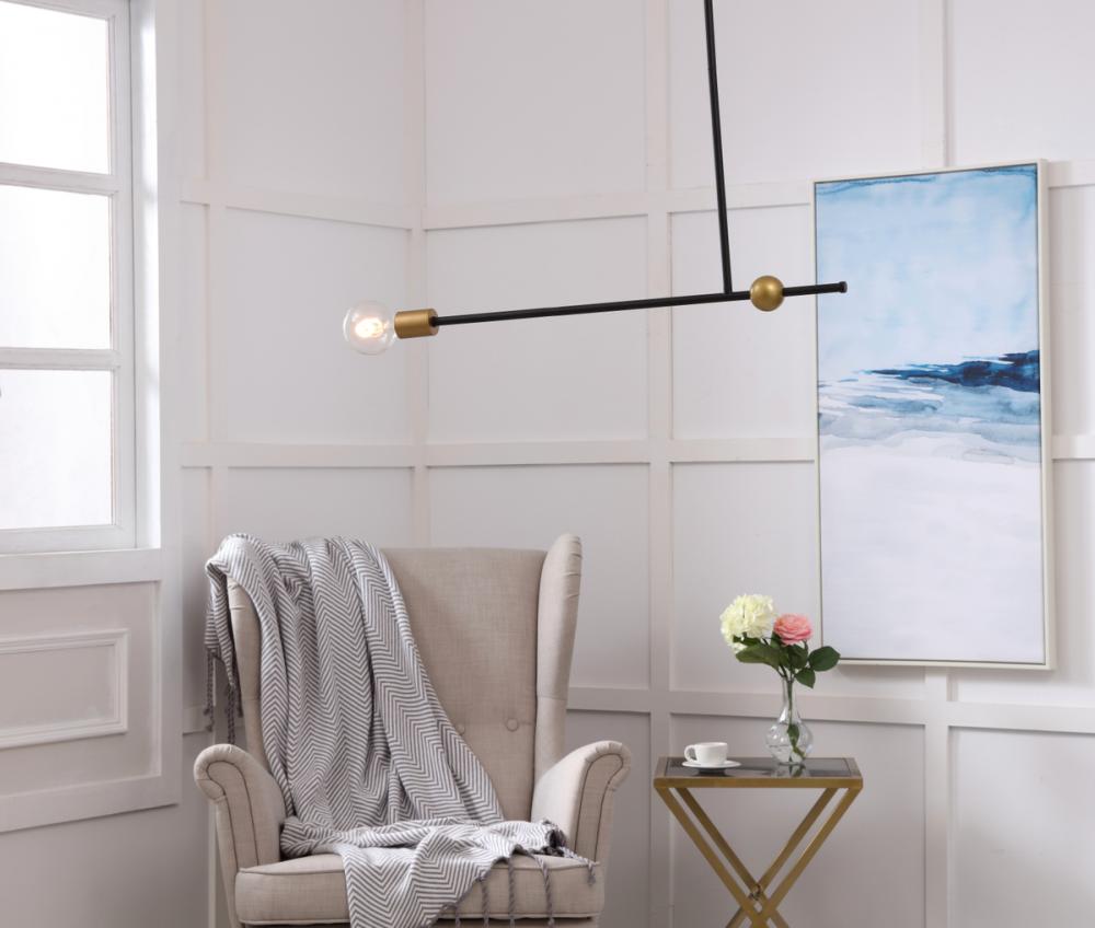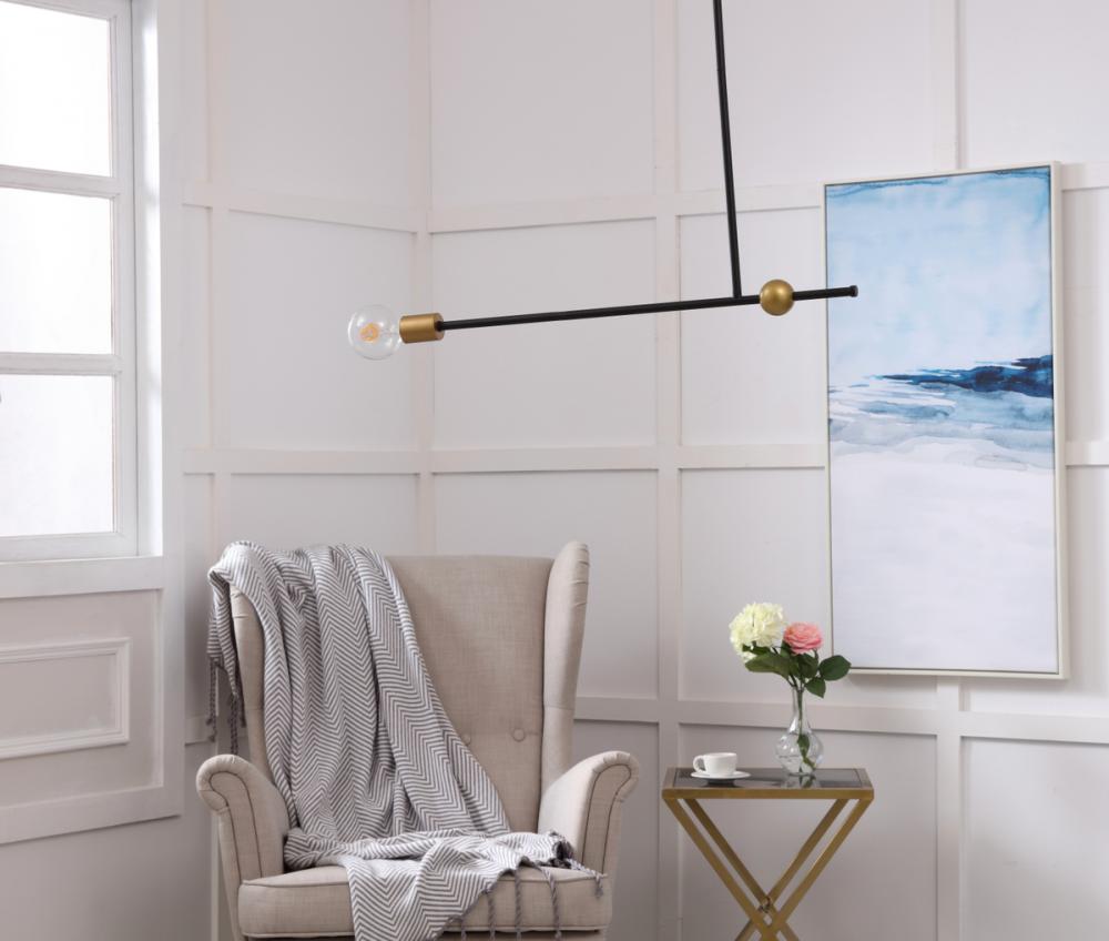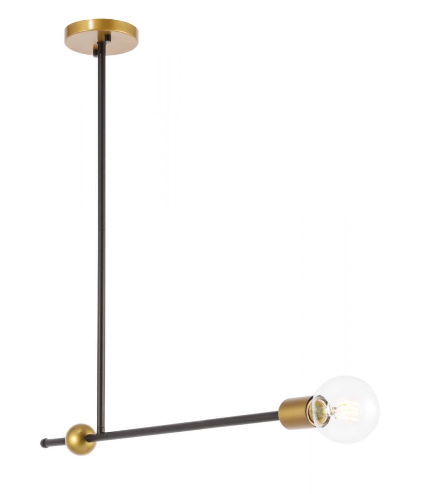 The Ryland Collection Pendant adds sophisticated elegance while still maintaining playful whimsy. The clean lines of the adjustable rod supports the light that sends its radiance throughout the room. Available in a brass, chrome, and two-toned black and brass finish, this fixture will add contemporary freshness to any room, your guests sure to notice your impeccable tastes in design (light bulbs not included).