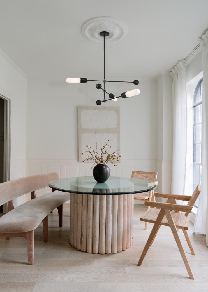 Characterized by clean lines, sculptural forms, and warm metallic or wood accents, often featuring bold shapes and playful pops of color for a retro yet timeless appeal.