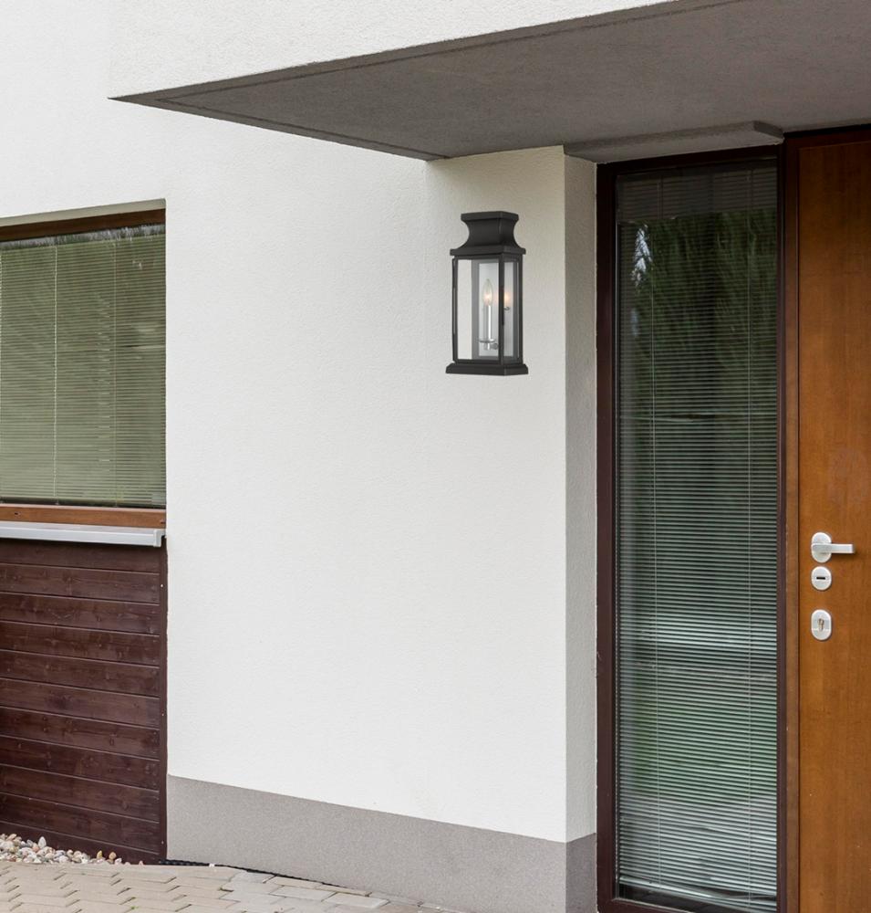 Welcome family and guests to your home in refined style. The Brooke wall lantern has a streamlined traditional aesthetic for an uncluttered, polished look. The black finish looks right with everything, including other hardware and most architectural materials —a slim, silvery candle tube adds a touch of simple luxury. The clean-lined, sculptural cornice has a classic shape. And the rectangular frame has clear glass panels so a 60W, C-style bulb can really shine. This lantern measures 7.25” wide by 17” high, and extends 4.5” from the wall. It’s a graceful, traditional wall lamp made from high quality materials, to provide you with welcoming light for many years.