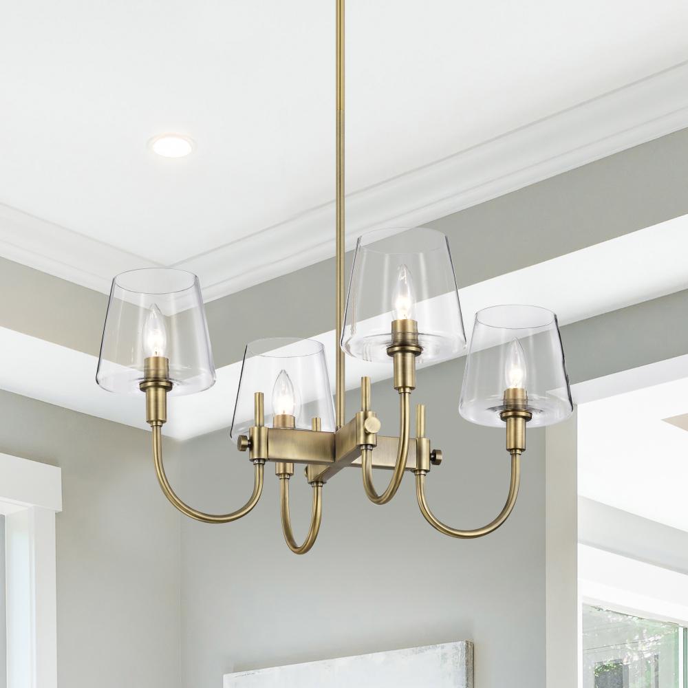 If you're looking to add a touch of classic, elegant lighting to your home, the Brookside 60-7885 chandelier fits the bill. A lustrous vintage brass hints at old world charm and accentuates the slender curves and lines of the fixture. The clear glass s