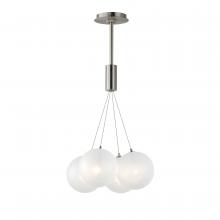 Clusters of glass globes in various sizes and color are suspended from a central point and burst outward. Configurations include a 4-Light, 9-Light, and 12-Light cluster and can be mounted close to the ceiling or included down rods to extend the height. Ch