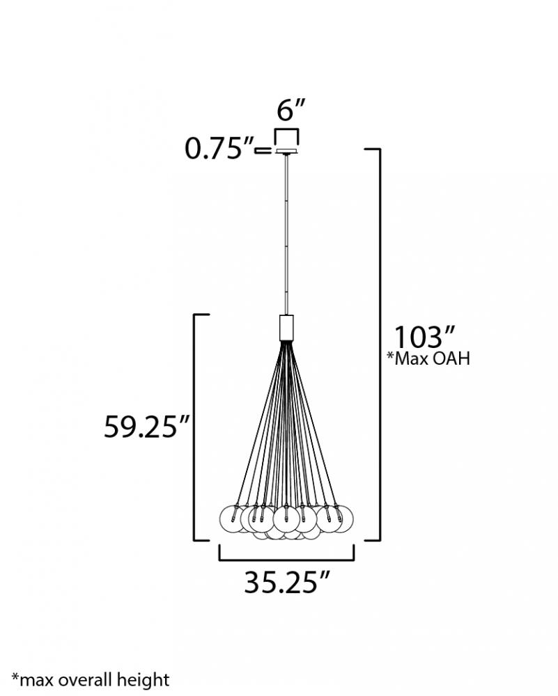 Clusters of glass globes in various sizes and color are suspended from a central point and burst outward. Configurations include a 4-Light, 9-Light, and 12-Light cluster and can be mounted close to the ceiling or included down rods to extend the height. Ch