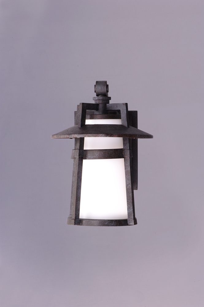 Classic, contemporary style of Die Cast aluminum finished in Adobe features an integral hood and Satin White conical shade, which help cast light in a downward direction.