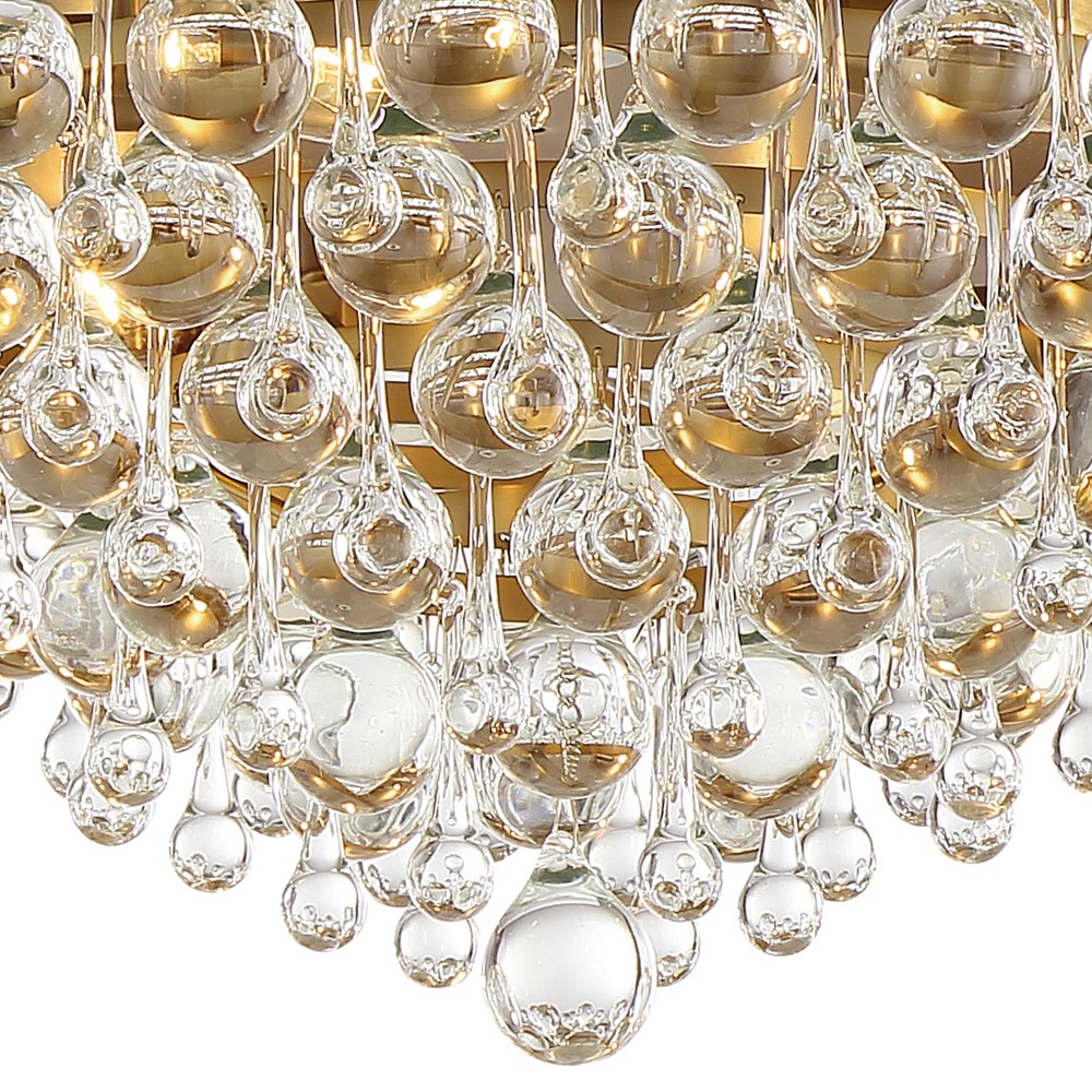 Elegance and glamour will illuminate the room with the Calypso collection. Draped in an abundance of smoothed shaped clear drops and balls, this contemporary collection is a perfect statement to a living room, dining room, bathroom, or entry.