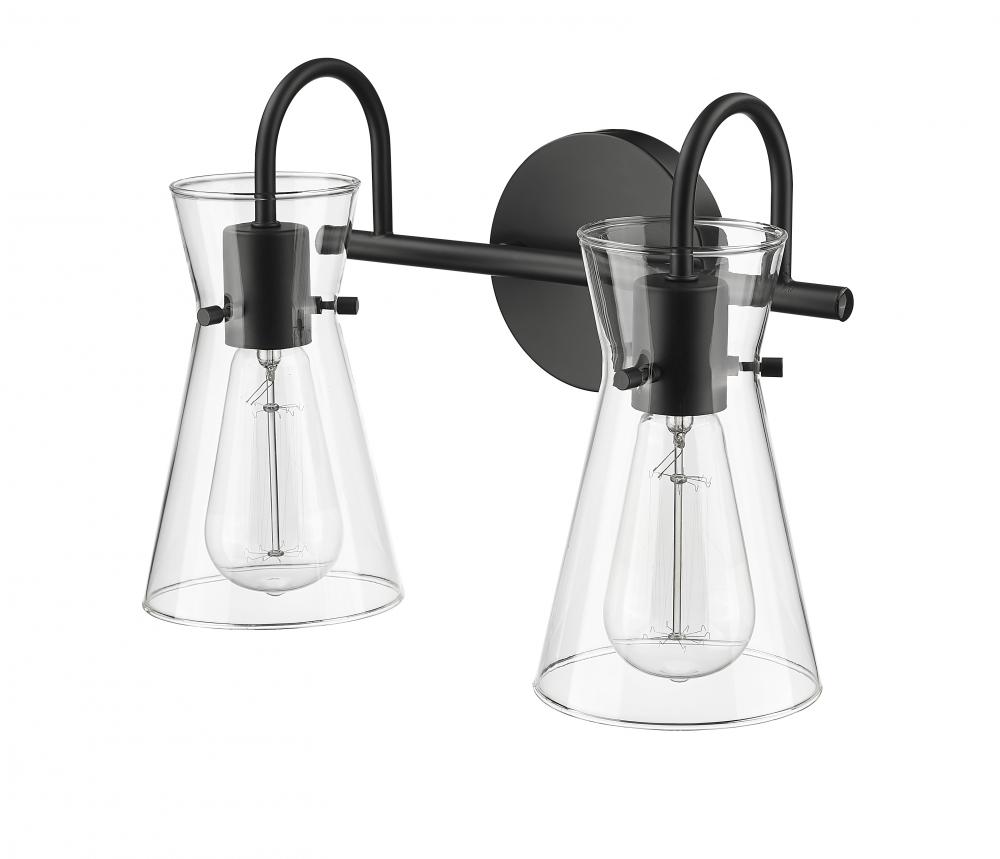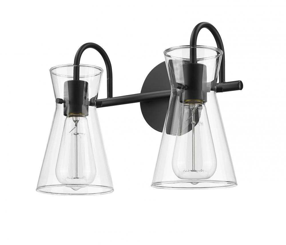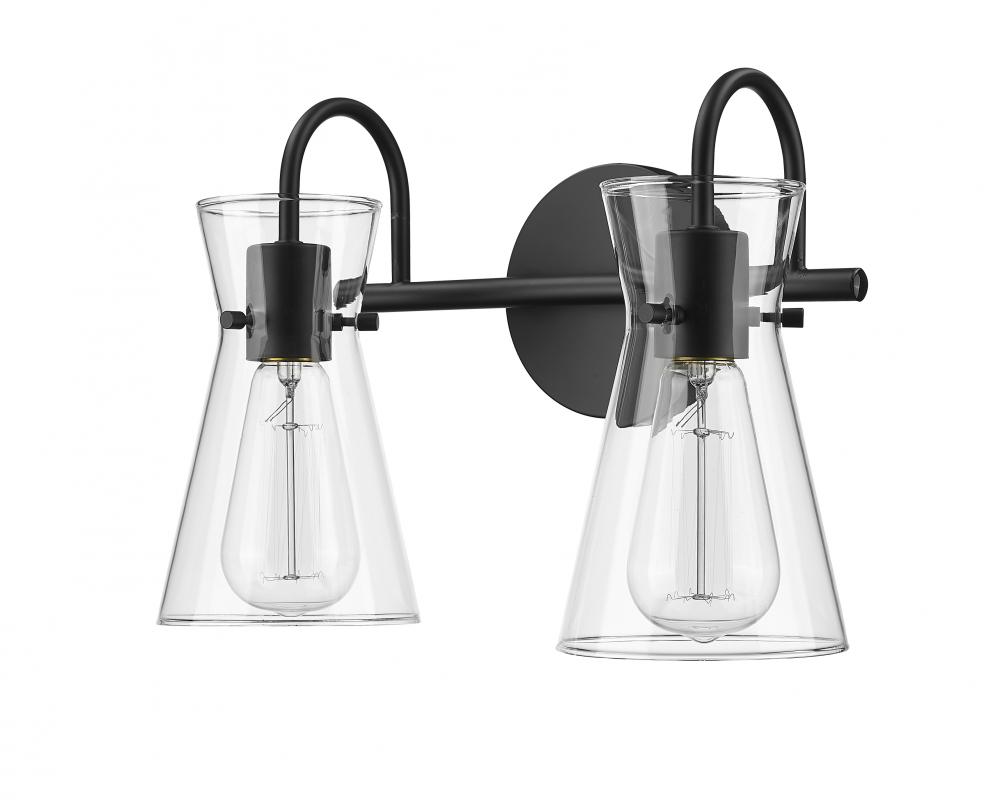 Distinctive beaker-shaped clear glass globes define the look of the Camellia Collection of vanity lighting. The overall design ensures well-defined lighting without shadows in the most needed spaces. The fixtures, featuring swan-neck lines and finished in modern gold, brushed nickel, or matte black, complete the overall design-forward effect and are available in 2-light, 3-light, and 4-light options.