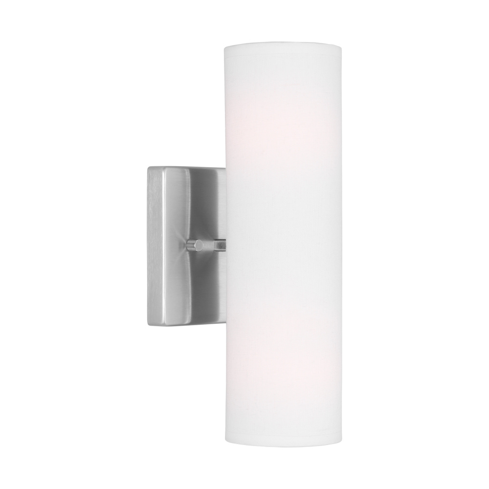 Sleek and modern, this contemporary collection features cylindrical linen shades and a visible flat spine for a clean look. It features a candelabra-style fixture with four sleek arms referencing mid-century modern design. On the end of each arm, frosted glass shades direct soft light in both directions.