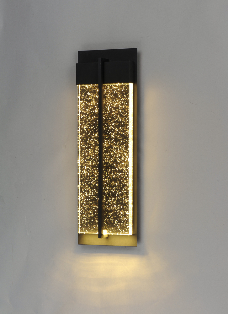 This popular outdoor collection gets an improved facelift and has additional sizes for a more complete collection. The Black finish presents a dramatic background for the solid block of Bubble Glass that is brightly illuminated by the LED concealed in the