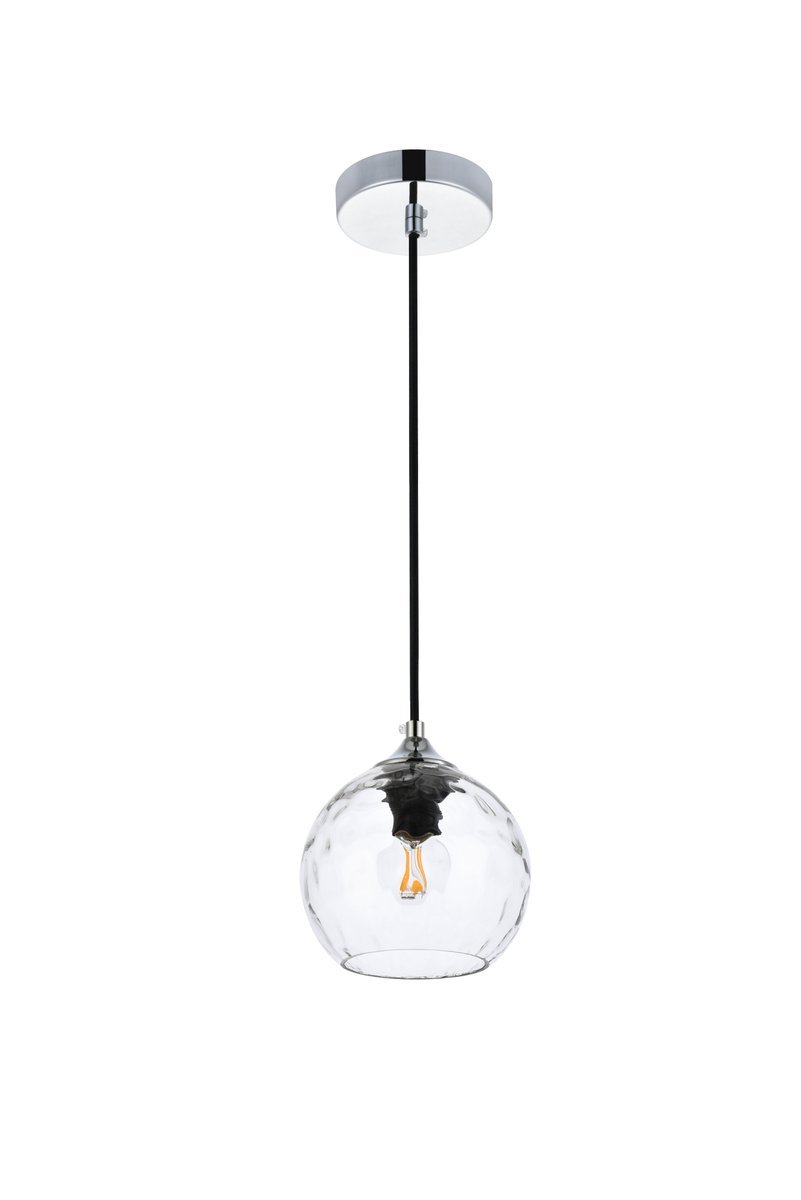 The Cashel Collection pendant light will illuminate any space. This piece comes in 3 lengths--- 6in, 8in, or 10in. Available in a brass or chrome finish this will look great in the living room, foyer, or bedroom. This product is dimmable and requires one E26 socket. Light bulbs not included.