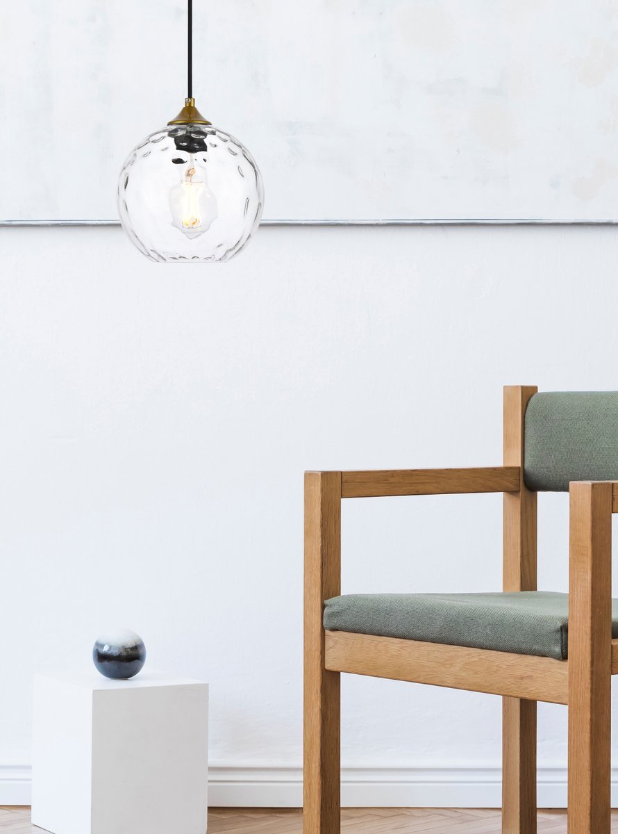 The Cashel Collection pendant light will illuminate any space. This piece comes in 3 lengths--- 6in, 8in, or 10in. Available in a brass or chrome finish this will look great in the living room, foyer, or bedroom. This product is dimmable and requires one E26 socket. Light bulbs not included.