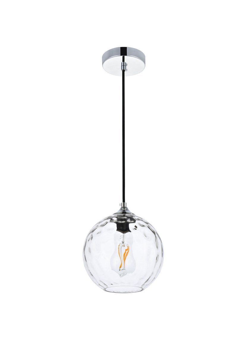 The Cashel Collection pendant light will illuminate any space. This piece comes in 3 lengths--- 6in, 8in, or 10in. Available in a brass or chrome finish this will look great in the living room, foyer, or bedroom. This product is dimmable and requires one E26 socket. Light bulbs not included.