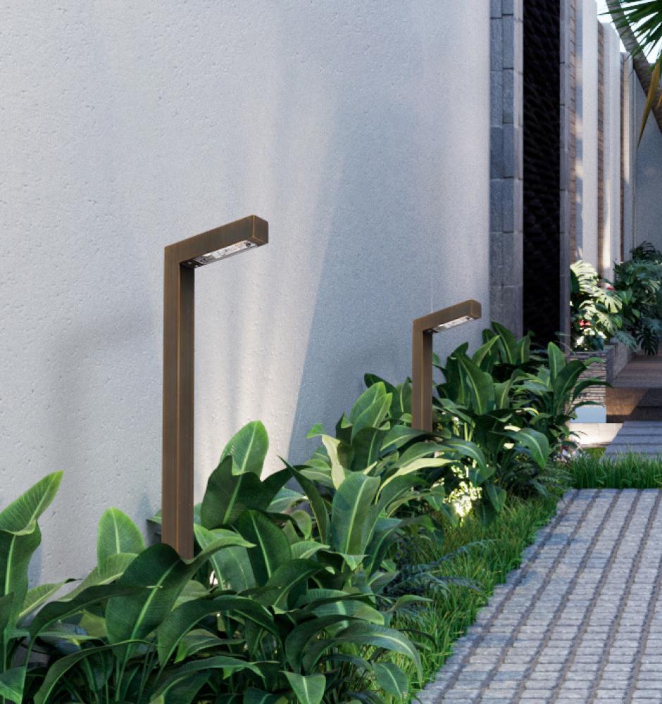 Put the fireflies to shame with Aera collection outdoor landscape path lights. The square frame is made of die-cast brass with an antique-brass finish and includes a large eight-inch spike for stability. The clear lens magnifies the power of the recommended 20-watt G4 halogen lamp (bulb not included). Unit comes with three feet of wire.