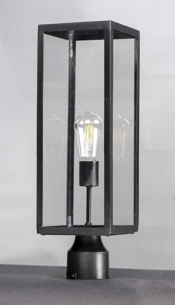 An elongated rectangular shaped design that is both minimalist and industrial. Die cast frames of Dark Bronze support Clear glass panels that provide an unobstructed view of the lantern's interior. Customize with your choice of lamps from vintage to tu