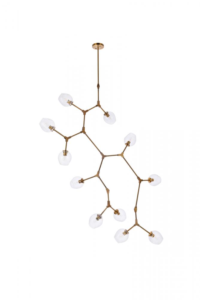 The daring Cavoli pendant lamp in a brass finish is designed with 11 lights that connect at various angles, illuminating your rooms and ridding them of darkness. The winding paths end with a light encapsulated within a clear shade at each point. This contemporary blend of art and function results in this light that will shine beautifully in any space it adorns.