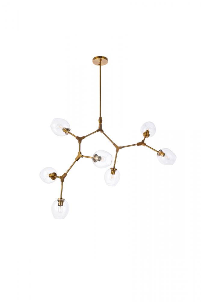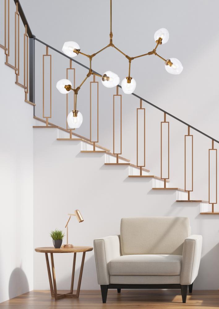 The daring Cavoli pendant lamp in a light antique brass and brass finish is designed with 7 lights that connect at various angles, illuminating your rooms and ridding them of darkness. The winding paths end with a light encapsulated within a clear shade at each point. This contemporary blend of art and function results in this light that will shine beautifully in any space it adorns.