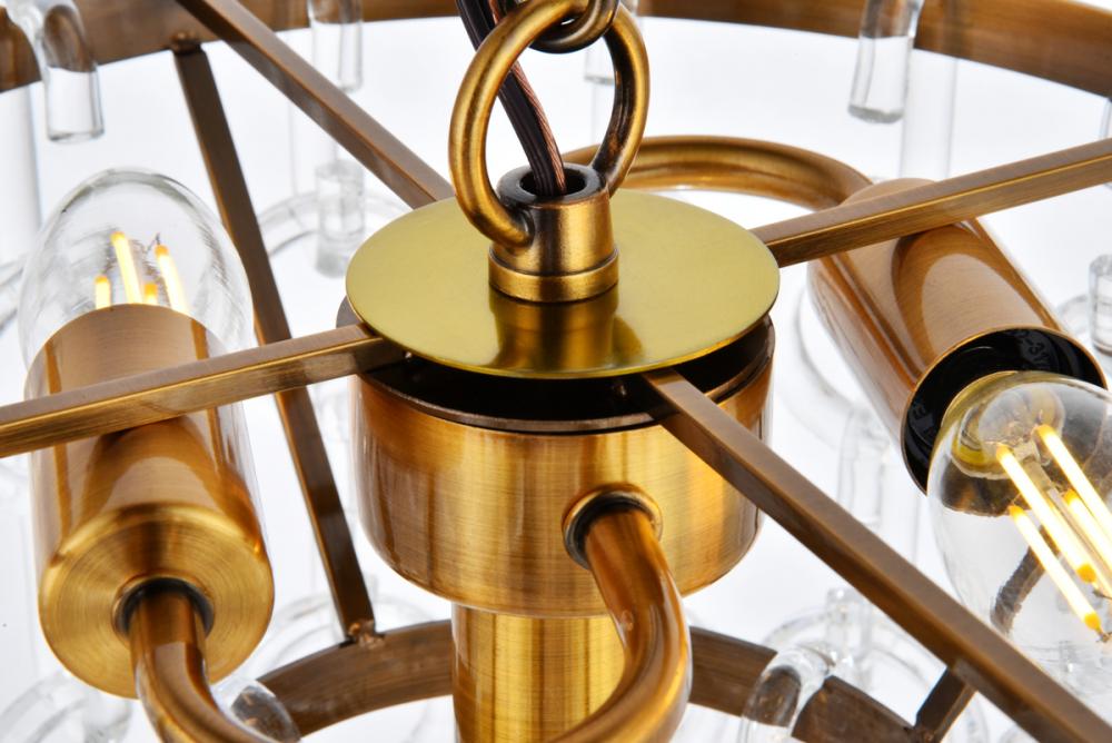 The daring Cavoli pendant lamp in a light antique brass and flat black finish is designed with 9 lights that connect at various angles, illuminating your rooms and ridding them of darkness. The winding paths end with a light encapsulated within a clear shade at each point. This contemporary blend of art and function results in this light that will shine beautifully in any space it adorns.