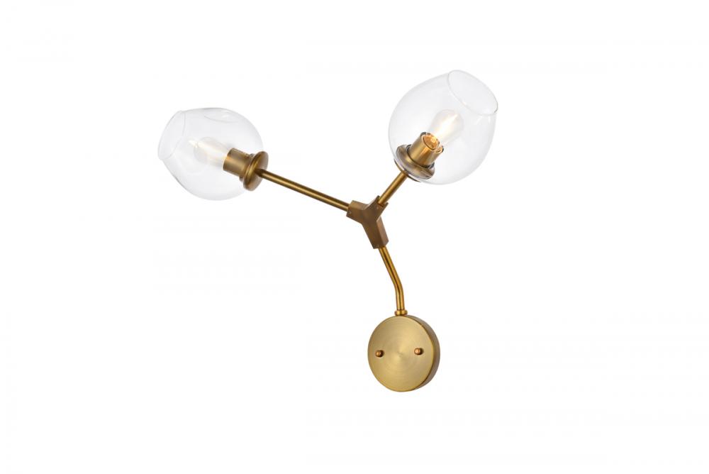 The daring Cavoli wall sconce in a black finish is designed with 2 lights that connect at an angle, illuminating your rooms and ridding them of darkness. The winding paths end with a light encapsulated within a clear shade at each point. This contemporary blend of art and function results in this light that will shine beautifully in any space it adorns.