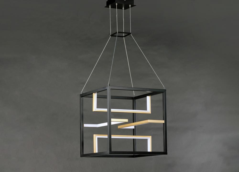Blocks of Black encase a series of contrasting U shape Gold structures that house the LED. Positioned in various directions, the entire room is illuminated by this unique architectural design.