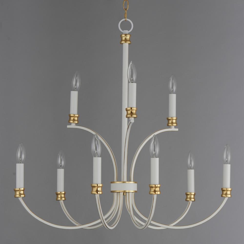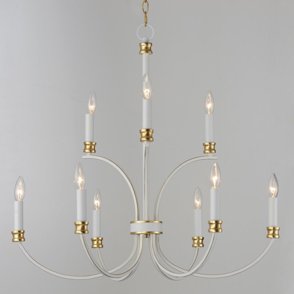 A lovely candelabra style collection with rich accents. This seemingly simple chandelier highlights classically curving accents in a stately combination of Black with Antique Brass accents or chic Weathered White with Gold Leaf accents. Taking a streamline