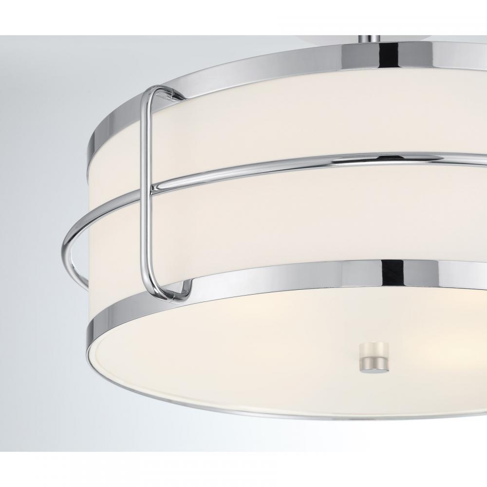The Savoy House Chauncey 4-light semi-flush mount proves that utilitarian style can be glamorous, too! It showcases a white fabric shade that is accentuated by sleek, chic cage detailing finished in shining Chrome. Chauncey is 12.25" in height and 22" in width, making it ideal for illuminating larger spaces. It uses four standard size bulbs of up to 60 watts per bulb. Bulbs not included.