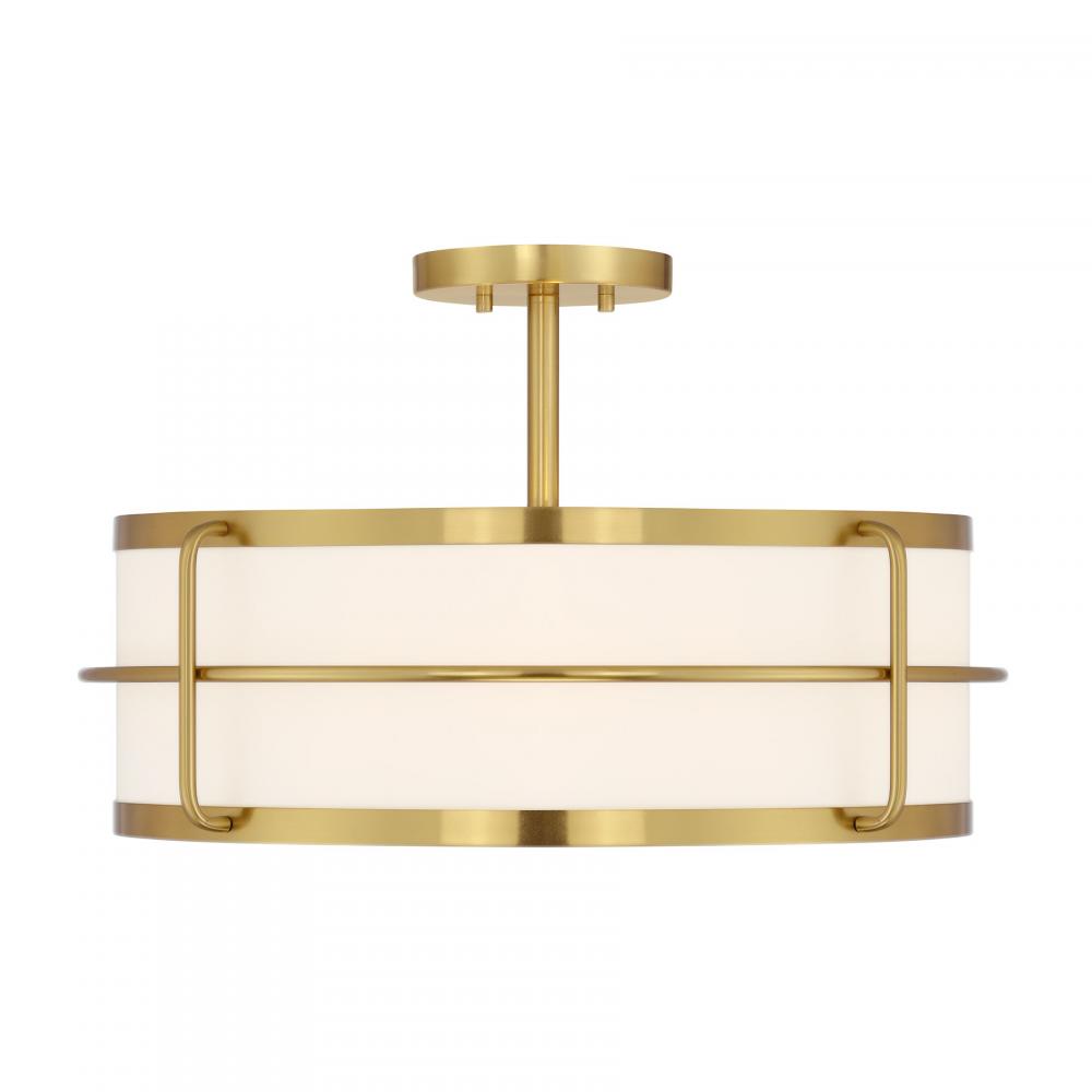 The Savoy House Chauncey 4-light semi-flush mount proves that utilitarian style can be glamorous, too! It showcases a white fabric shade that is accentuated by sleek, chic cage detailing finished in shining Warm Brass. Chauncey is 12.25" in height and 22" in width, making it ideal for illuminating larger spaces. It uses four standard size bulbs of up to 60 watts per bulb. Bulbs not included.