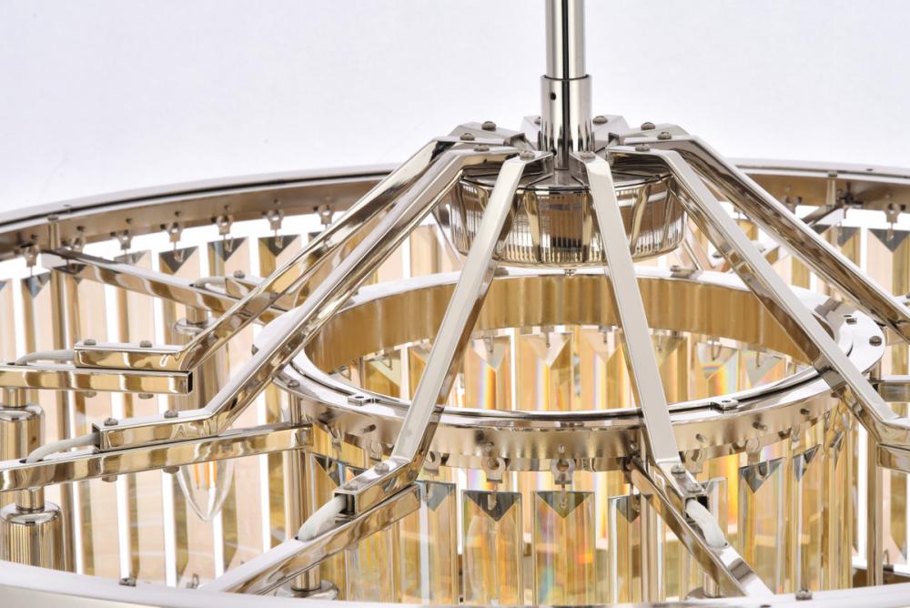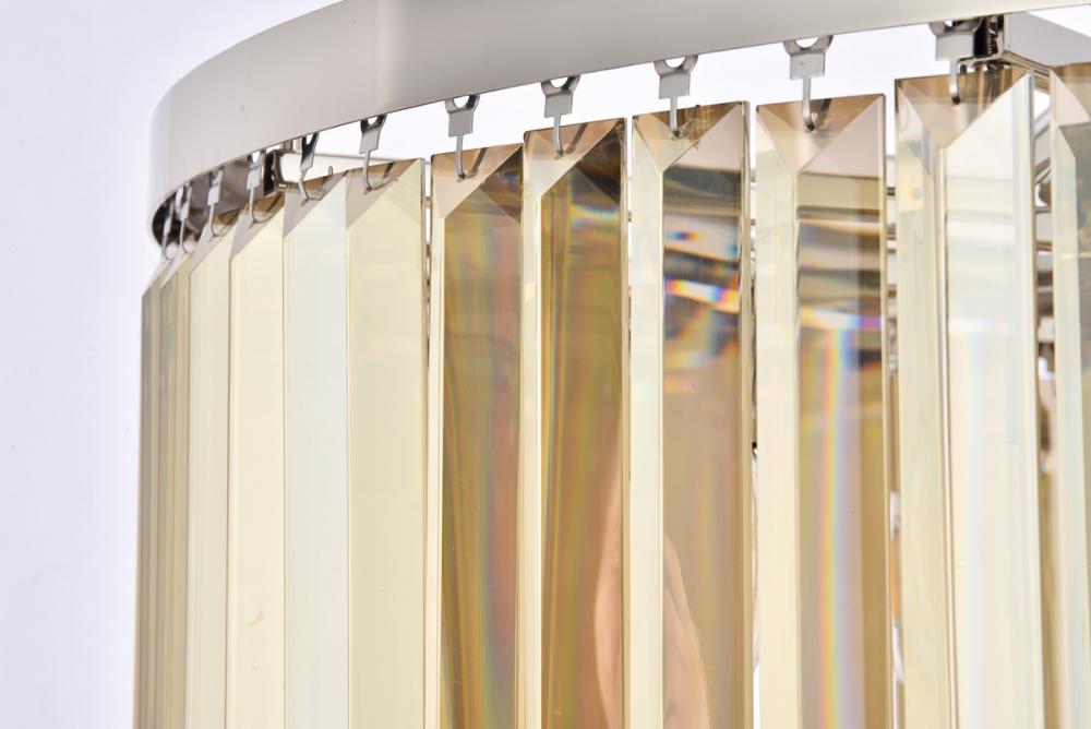 An infinity of light, caught in a circle of crystal bars in clear, golden teak, or Silver shade, the Chelsea collection will bring a shimmer of brilliance to your home. The circular steel frame in a mocha-brown or polished-nickel finish lends subtle strength to this chandelier design. The Chelsea collection adds transitional grace especially to a kitchen, bedroom, or dining room.
