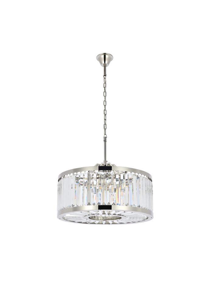 An infinity of light, caught in a circle of crystal bars in clear, golden teak, or Silver shade, the Chelsea collection will bring a shimmer of brilliance to your home. The circular steel frame in a mocha-brown or polished-nickel finish lends subtle strength to this chandelier design. The Chelsea collection adds transitional grace especially to a kitchen, bedroom, or dining room.
